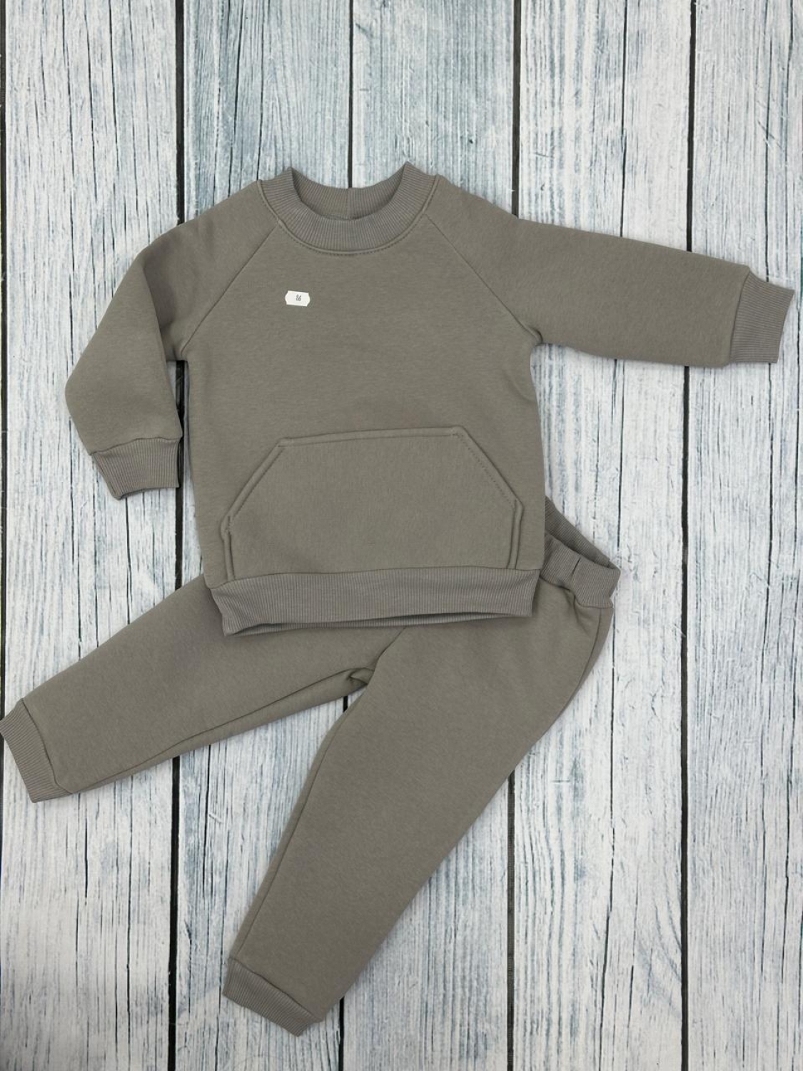 Купить оптом 297-СЕР. Свитшот + Штаны, хлопок 65%, 35% ПЭ, 3-х нитка (начес) серый ,80,86,92,98,104 в Норильске