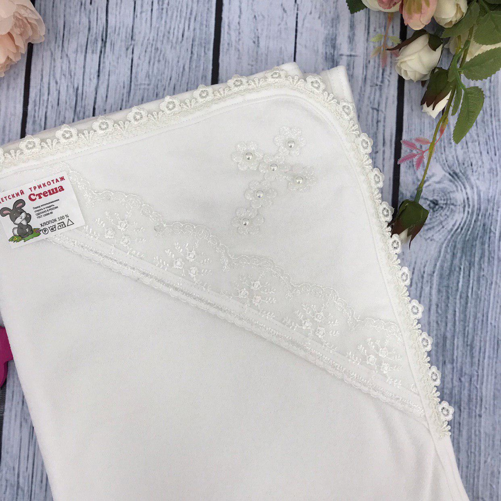 229. Крестильная пеленка, хлопок 100% Махра, молочный